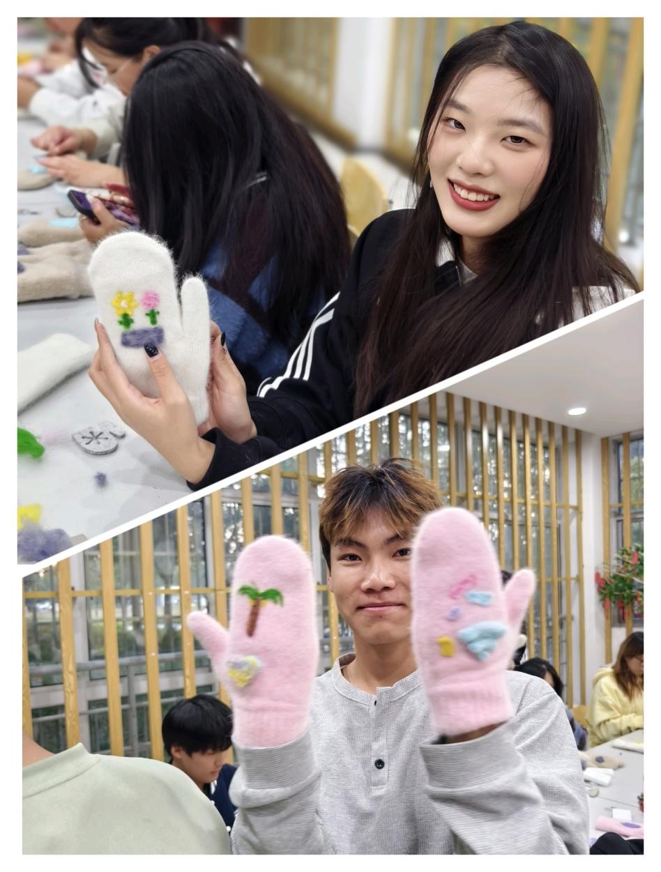 在轻松愉快的氛围中,大家精心制作出了一个个或清新,或可爱,或时尚的个性手套。同学们非常开心地说:“虽然我有手套,但是完全没有这种DIY手套的独特和意义,和大家一起动手太有趣了,以后我还要积极参加学院的活动!”