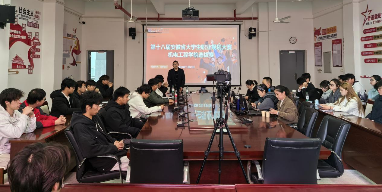 为加强学生生涯教育和就业指导,增强大学生职业规划意识,促进高质量充分就业,11月21日,机电工程学院举办了大学生职业规划大赛决赛。通过前期44名预赛参赛选手的选拔,来自23级、24级的18名同学参加了最终决赛,决赛邀请学生处和兄弟院系的就业指导老师担任评委,该院党总支副书记宋忠春主持比赛。