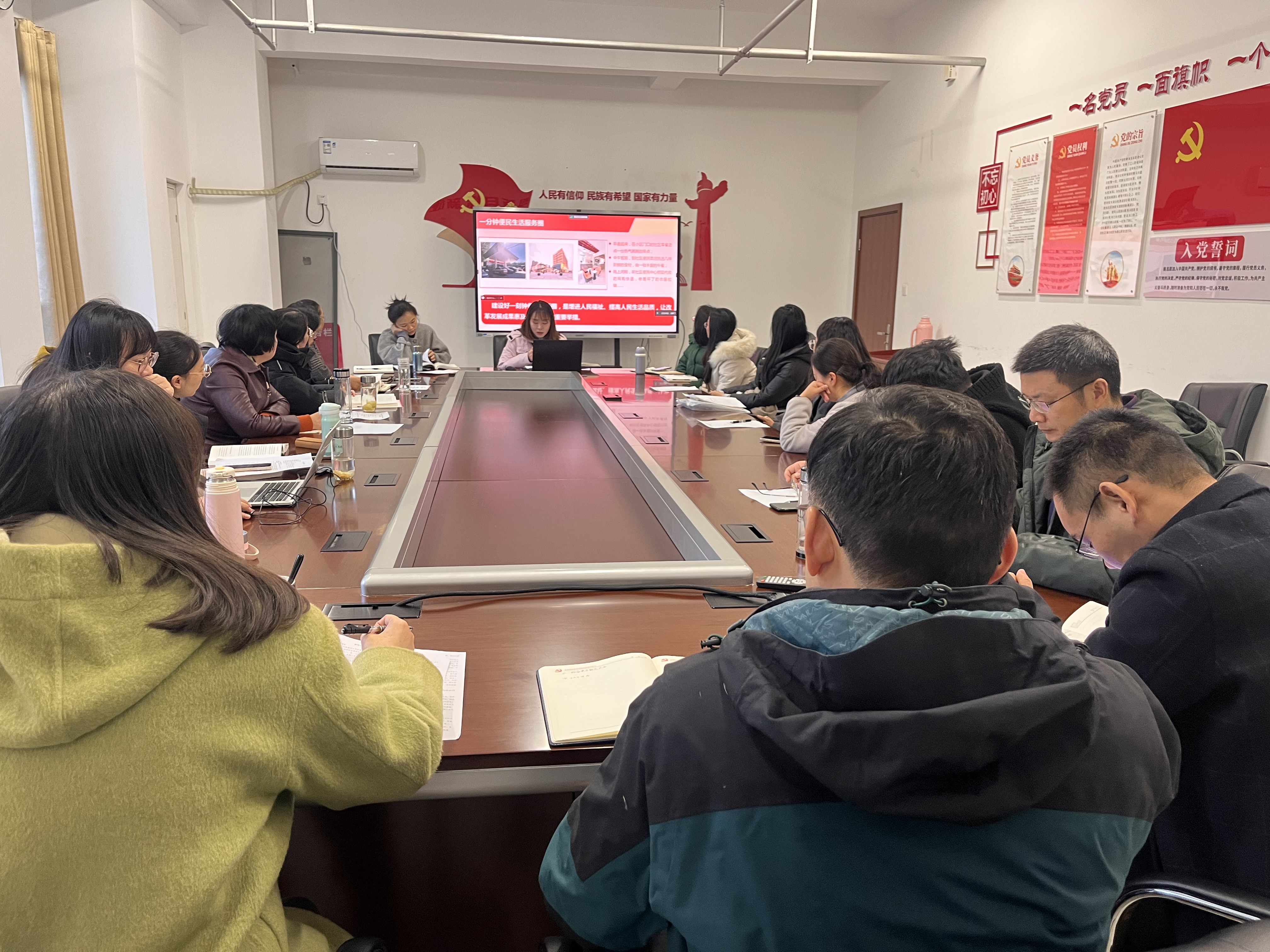 为深入贯彻落实党的二十届三中全会精神和习近平总书记关于思政课建设重要讲话精神,充分发挥思政课在立德树人根本任务中的关键作用,推动思政课建设高质量发展,12月4日下午,马克思主义学院在两校区会议室以视频会议的形式,开展了《习近平新时代中国特色社会主义思想概论》第三次集体备课会,学院党支部书记王文飞、院长胡心红和全体教职工参加。基础教育学院副院长(主持工作)施敏发携基础教育学院部分教师现场观摩了集体备课活动。会议由胡心红主持。