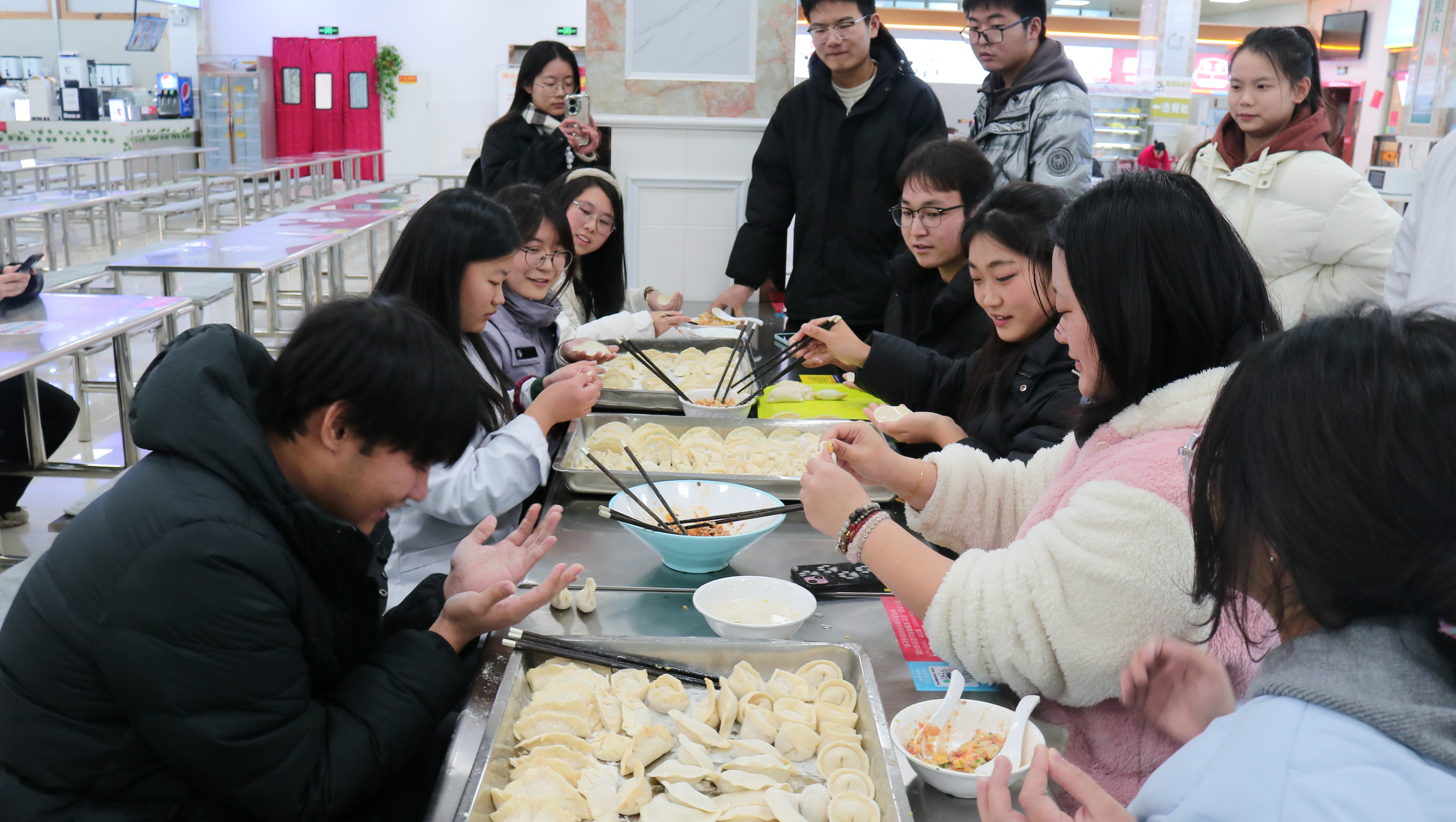 随着夜幕降临,一盘盘热腾腾的饺子被端上了餐桌。大家围坐在一起,品尝着自己亲手包制的饺子,感受着节日的温暖与欢乐。同时,校学生会的同学们也为在现场的我校学生送上热气腾腾的饺子,也让大家感受到来自学生会组织的关怀和温暖。