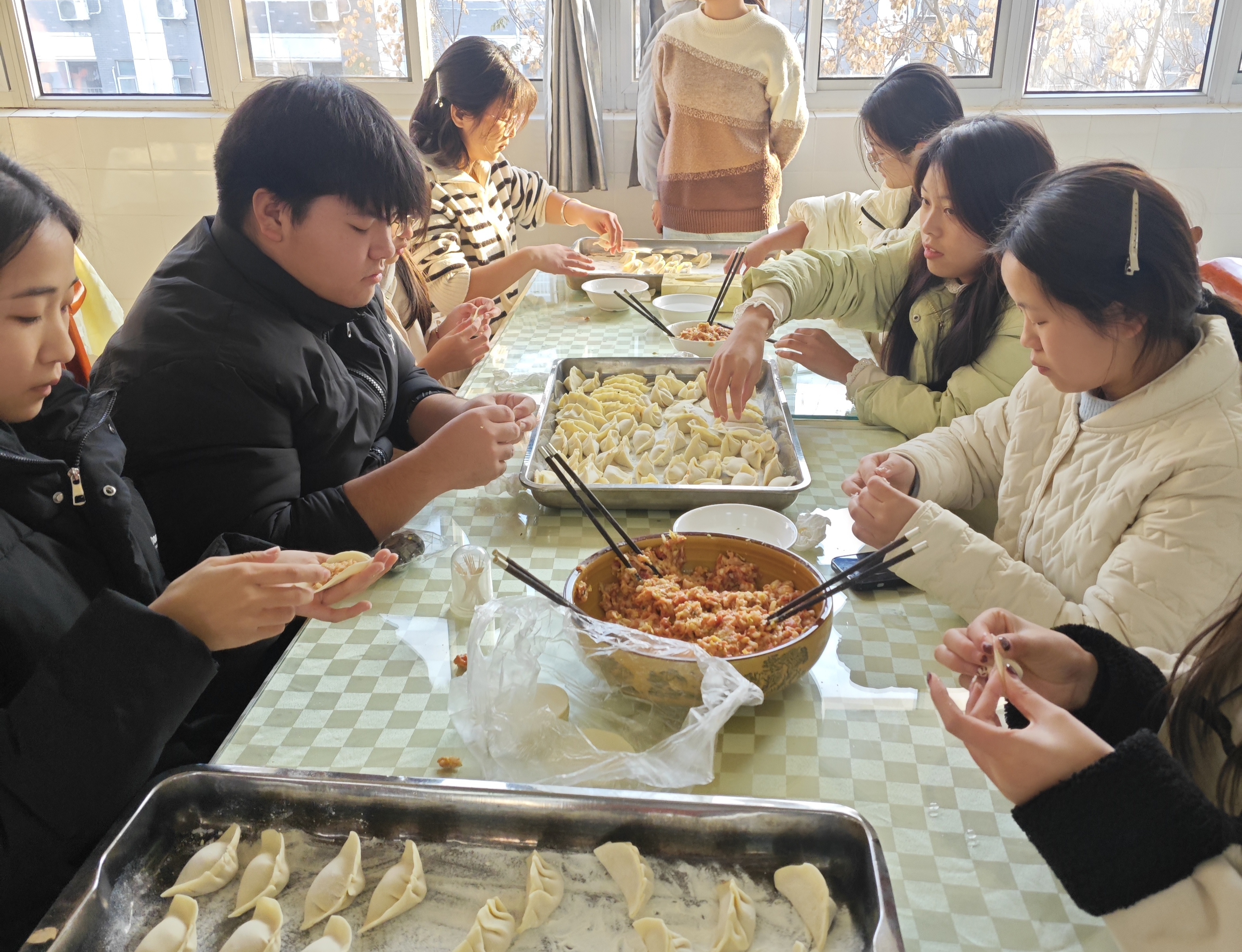 在包饺子的过程中,同学们相互交流,分享经验,现场洋溢着欢声笑语。有的小组注重饺子的形状,力求包出最完美的作品;有的小组则更注重馅料的搭配,力求让味道更加鲜美。在大家的共同努力下,一个个形状各异、色香味俱佳的饺子逐渐摆满了盘子。活动期间,校学生会成员穿梭于各个小组之间,为大家提供指导和帮助,确保活动顺利进行。