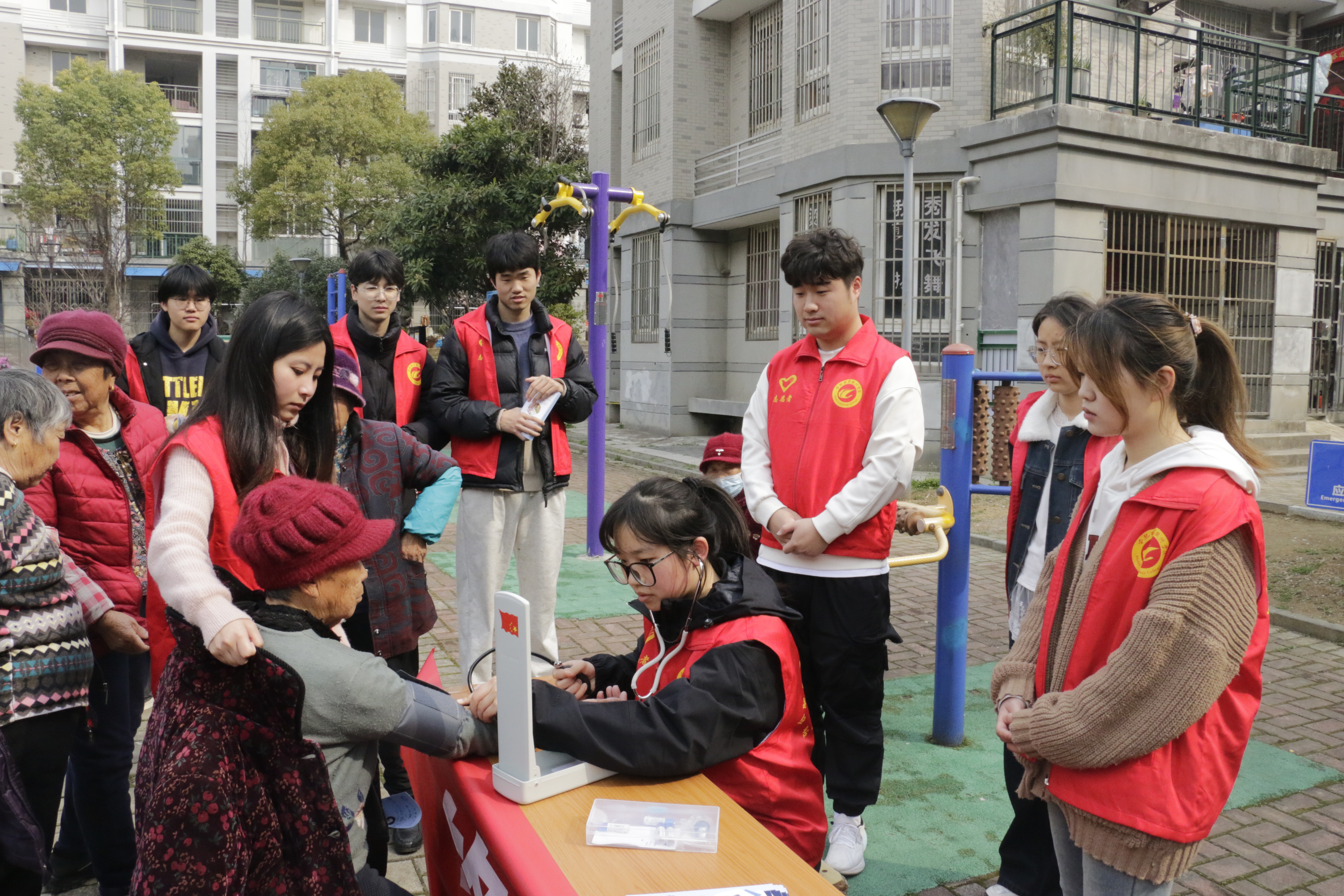 活动当天,医学院第六、第七、第八党支部的教师党员们带领学生入党积极分子和志愿者团队,早早来到西山社区。大家迅速搭建起血压检测、健康咨询、免费理发等多个服务点位,有条不紊地投入工作。在血压检测区,居民们有序排队,学生志愿者们耐心细致地为每一位居民测量血压,并认真记录数据。志愿者们还向居民发放健康宣传单,普及肺结核、高血压、脂肪肝、支气管哮喘等常见疾病的防治知识。面对居民的健康咨询,医学生们耐心倾听,结合个人实际,提供专业、个性化的防治建议,并围绕科学用药、膳食调理、运动保健等内容进行科普,引导居民树立“早预防、早干预”的健康理念。考虑到部分老年人行动不便,志愿者们还主动上门提供服务,将温暖送到家。“量血压、问病情,还教我们怎么吃得健康,真是太感谢了!”一位参与义诊的孙阿姨高兴地说。