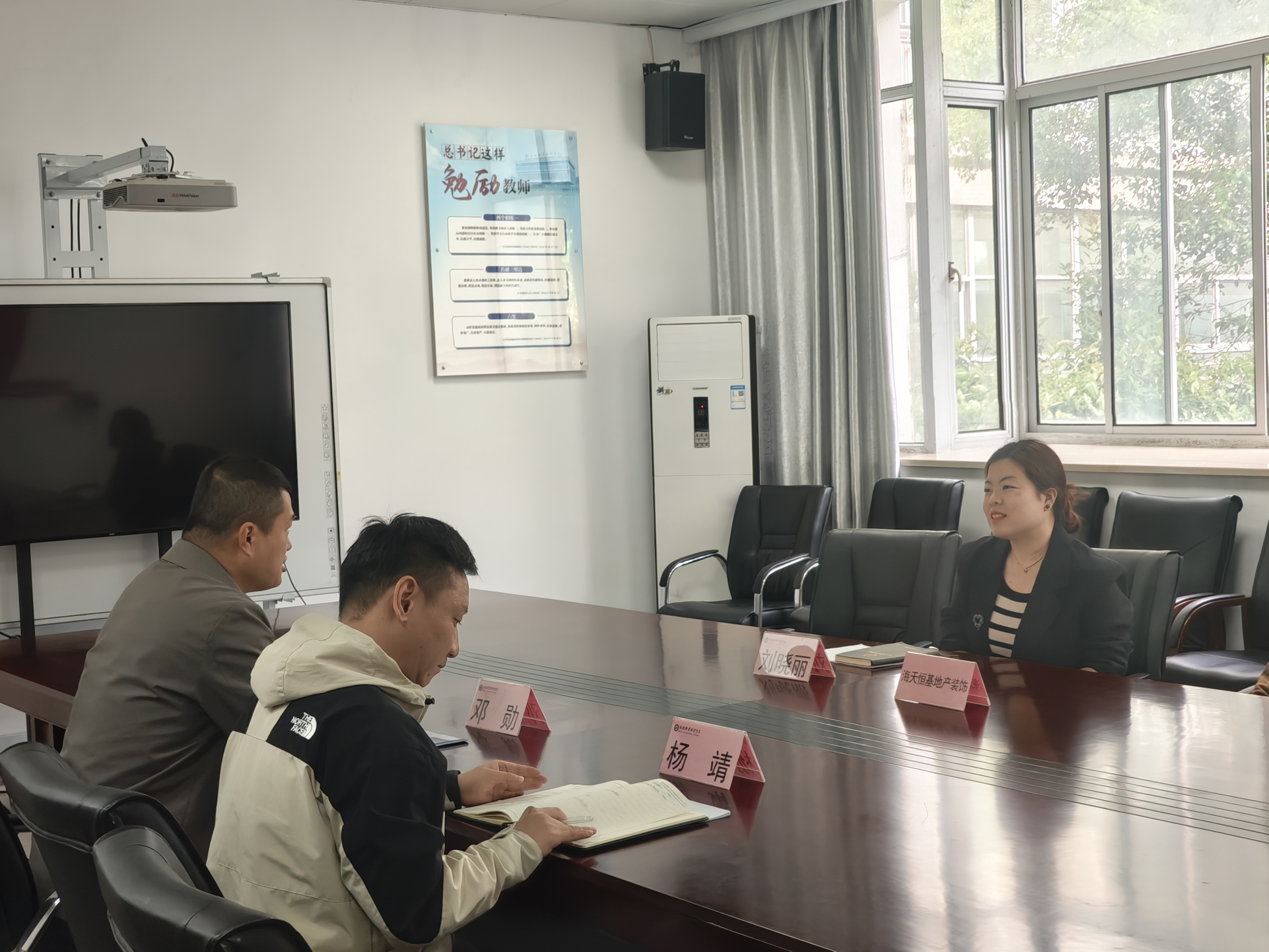 4月11日上午,北京海天恒基装饰集团人力资源部经理刘晓丽来校进行校企合作交流。建筑工程学院副院长邓勋、综合办主任杨靖参加了本次交流会。
