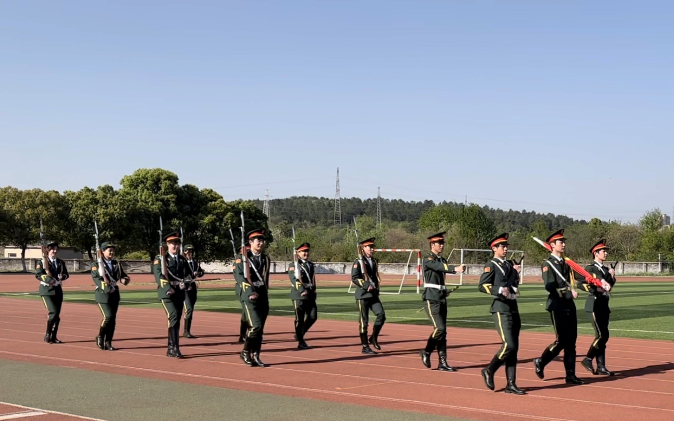 升旗仪式伊始,现场气氛庄严肃穆。八点整,国旗护卫队成员迈着整齐有力的步伐,步入仪式现场。随着国歌奏响,五星红旗徐徐升起,全体师生面向国旗行注目礼,表达对祖国的无限热爱和崇高敬意。