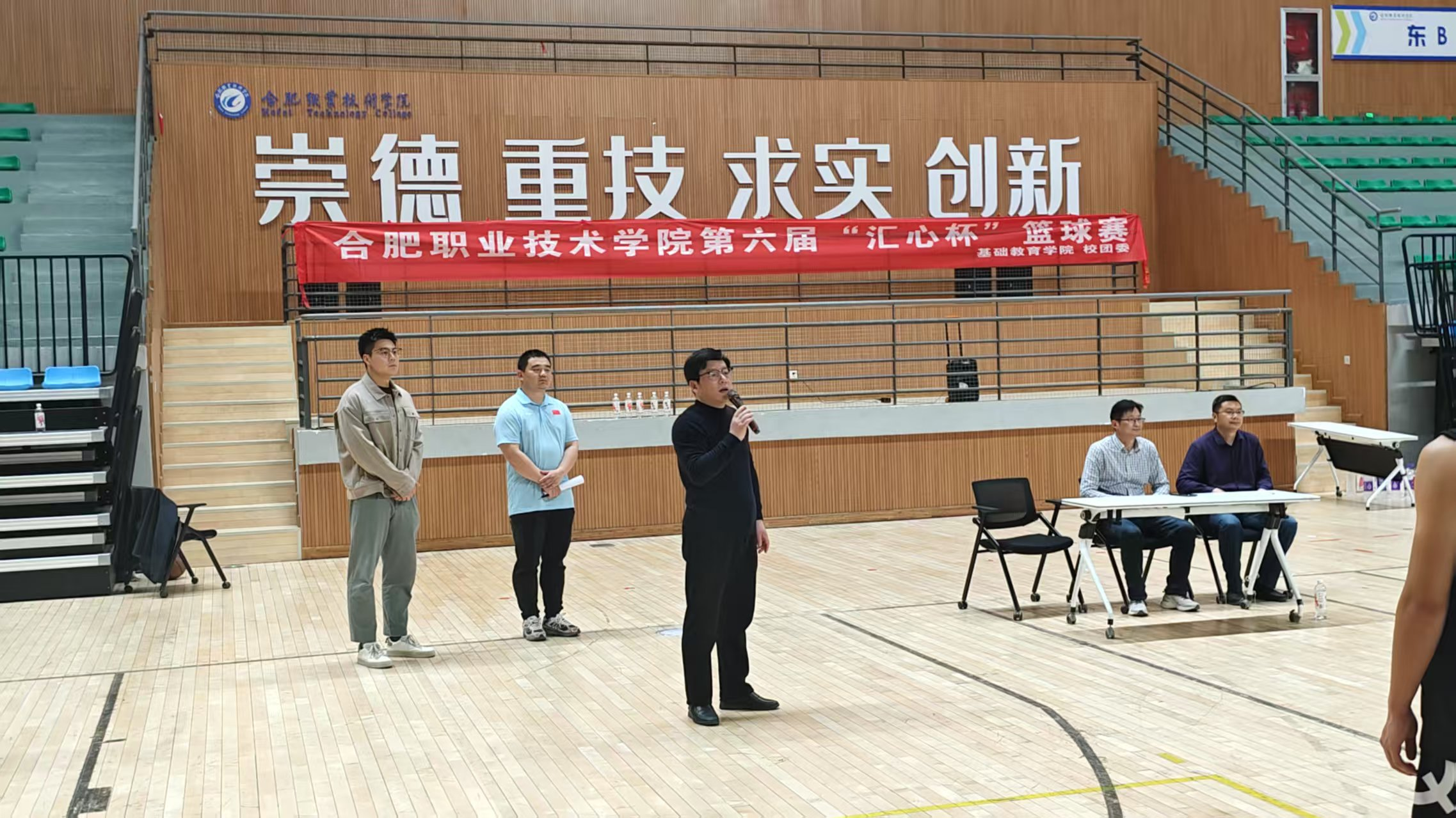 4月10日下午,我校第六届“汇心杯”篮球赛在两校区室内篮球馆同步举行。校党委委员、办公室主任窦红平受邀出席汇心湖校区篮球赛开幕式,基础教育学院党政负责人、部分体育教师代表和各二级学院学生代表队参加活动。