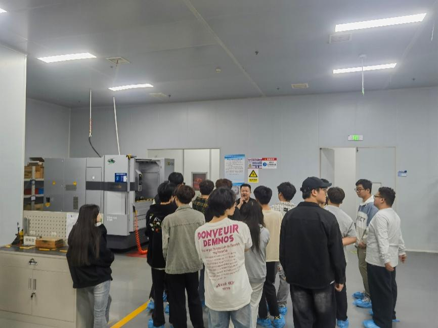 安徽众合半导体科技有限公司总经理助理顾总、模具中心何部长、管理部蒋部长等企业中高层管理人员对学院师生团队的到来表示热烈欢迎。顾总详细介绍了企业发展历程、主要产品、生产规模及未来发展规划,并重点讲解了企业人才需求及招聘岗位情况。在随后的参观环节中,师生们先后深入模具加工车间、装配车间和质检车间,实地观摩五轴联动加工中心、电火花成型机等先进设备的操作流程,了解精密模具从设计、加工到质检的全链条工艺。通过近距离接触企业真实生产环境,学生们对模具行业的技术要求和发展趋势有了更直观的认识,为即将开始的实习做好了充分准备。