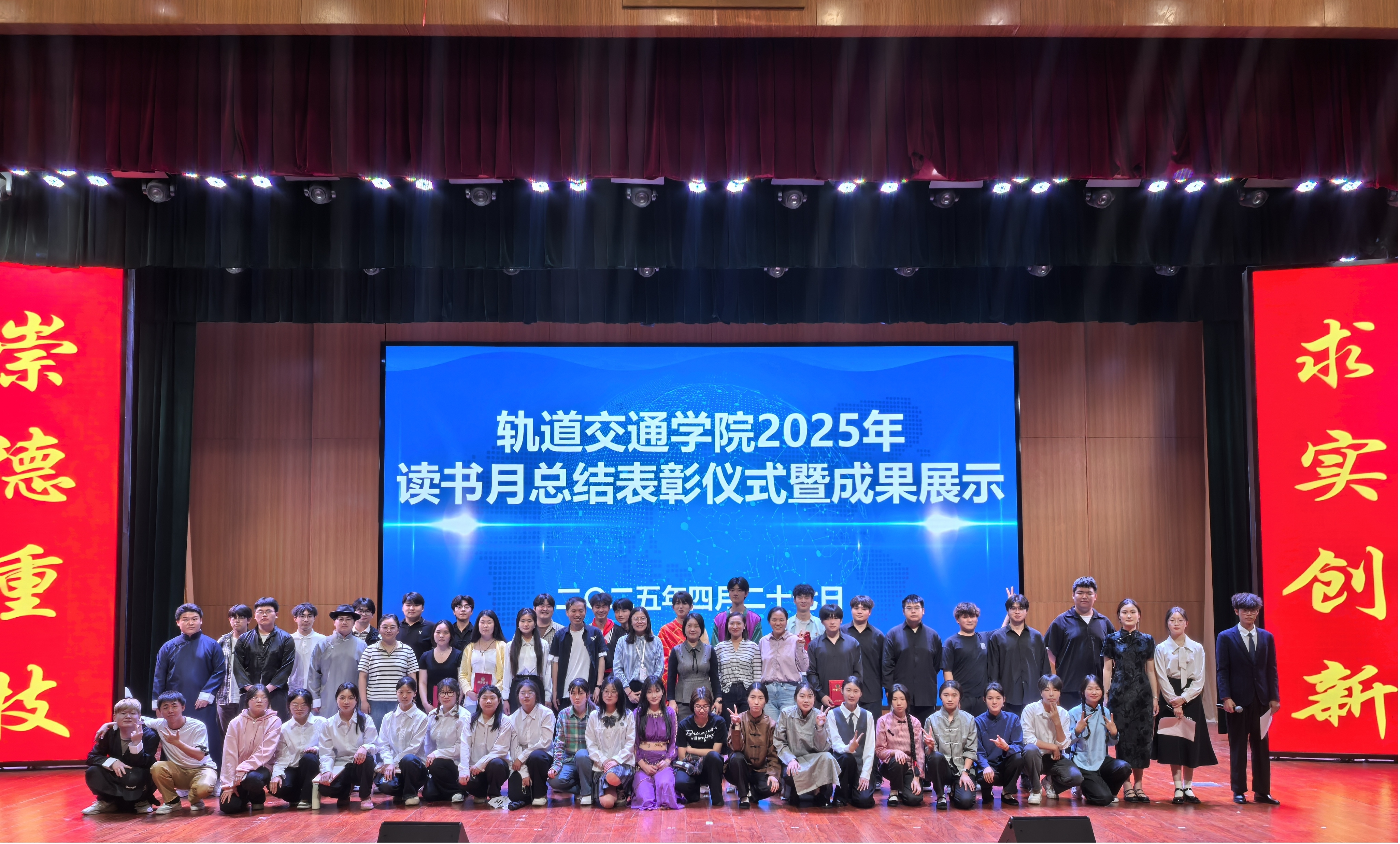4月27日,轨道交通学院2025年读书月总结表彰仪式暨成果展示活动在大学生活动中心礼堂圆满落幕,该院宣传统战部长、轨道交通学院党总支书记佘海月,校团委副书记、经贸旅游学院党总支副书记赵倩倩,轨道交通学院党总支副书记梁雯婷,轨道交通学院全体辅导员及23级、24级全体在校学生齐聚大学生活动中心,共同回顾了这场阅读与艺术交织的文化盛宴。