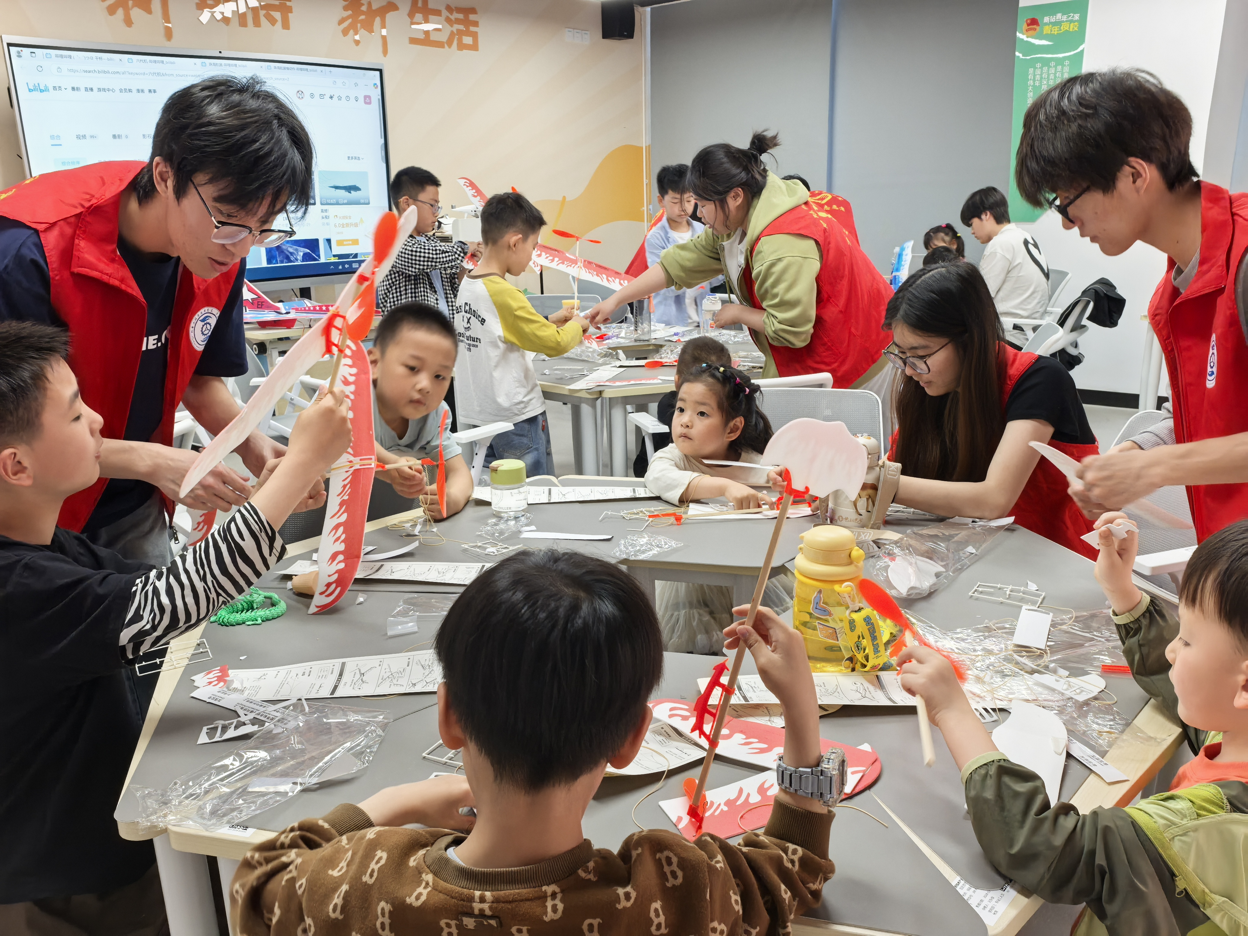 航模腾空传科技,科普互动育童心。为切实提高社区青少年儿童的思想政治素质和科学文化素质,增强在校大学生动手实践与团队协作能力,激发创新思维与探索精神。4月26日下午,机电工程学院“小螺钉”志愿服务队12名志愿者走进合肥新站高新区工人文化宫,为社区孩子们带来了一场别开生面的科普教育志愿服务活动。