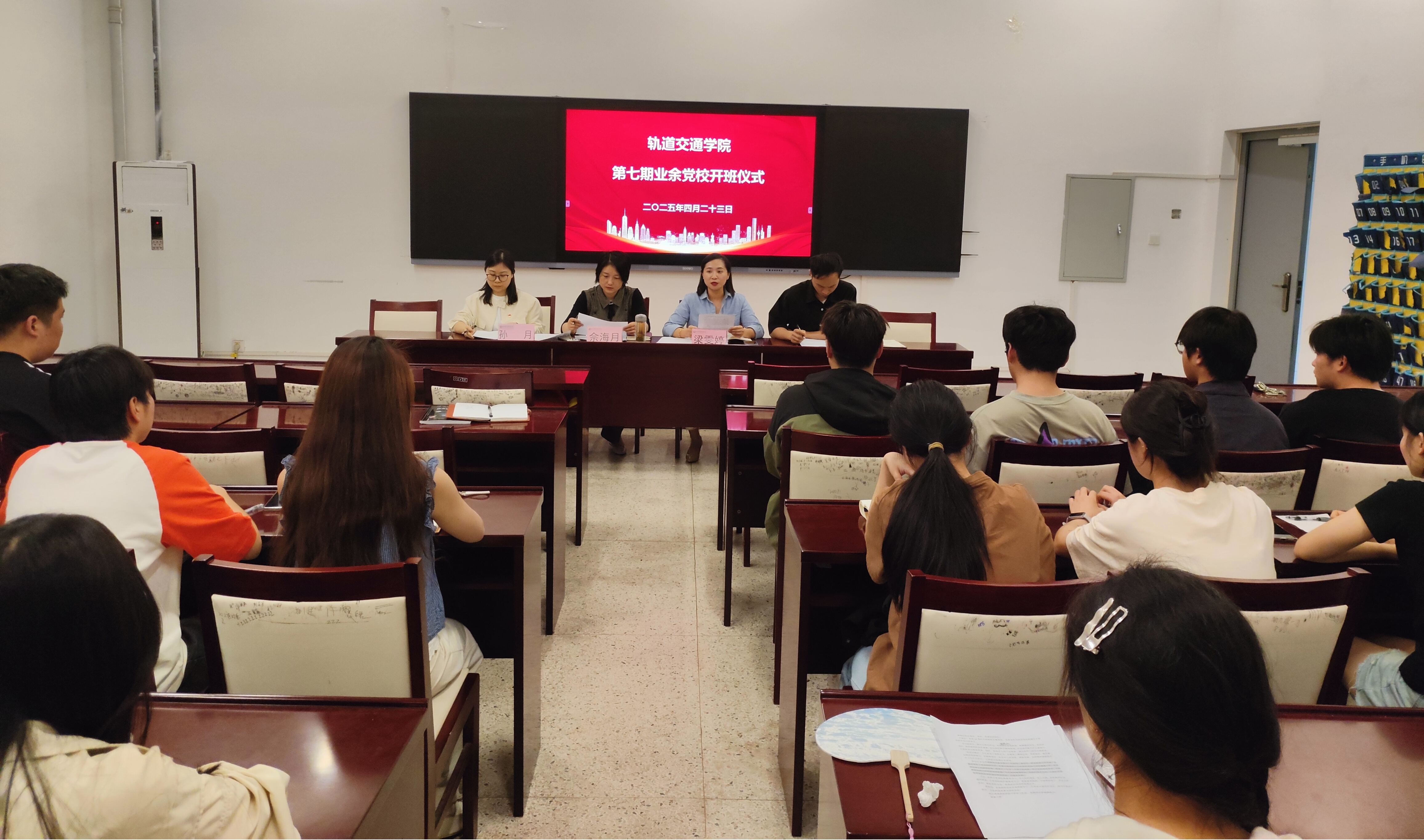 为深入学习贯彻习近平新时代中国特色社会主义思想和党的二十届三中全会精神,切实做好党员发展工作,提升入党积极分子的政治素养与理论水平,4月23日下午,轨道交通学院第七期入党积极分子业余党校培训班开班仪式在轨道楼309教室举行。校宣传统战部长、轨道交通学院党总支书记佘海月出席并讲授专题党课。轨道交通学院第三、第四、第五党支部全体教师党员及第七期业余党校全体学员参加了此次活动。