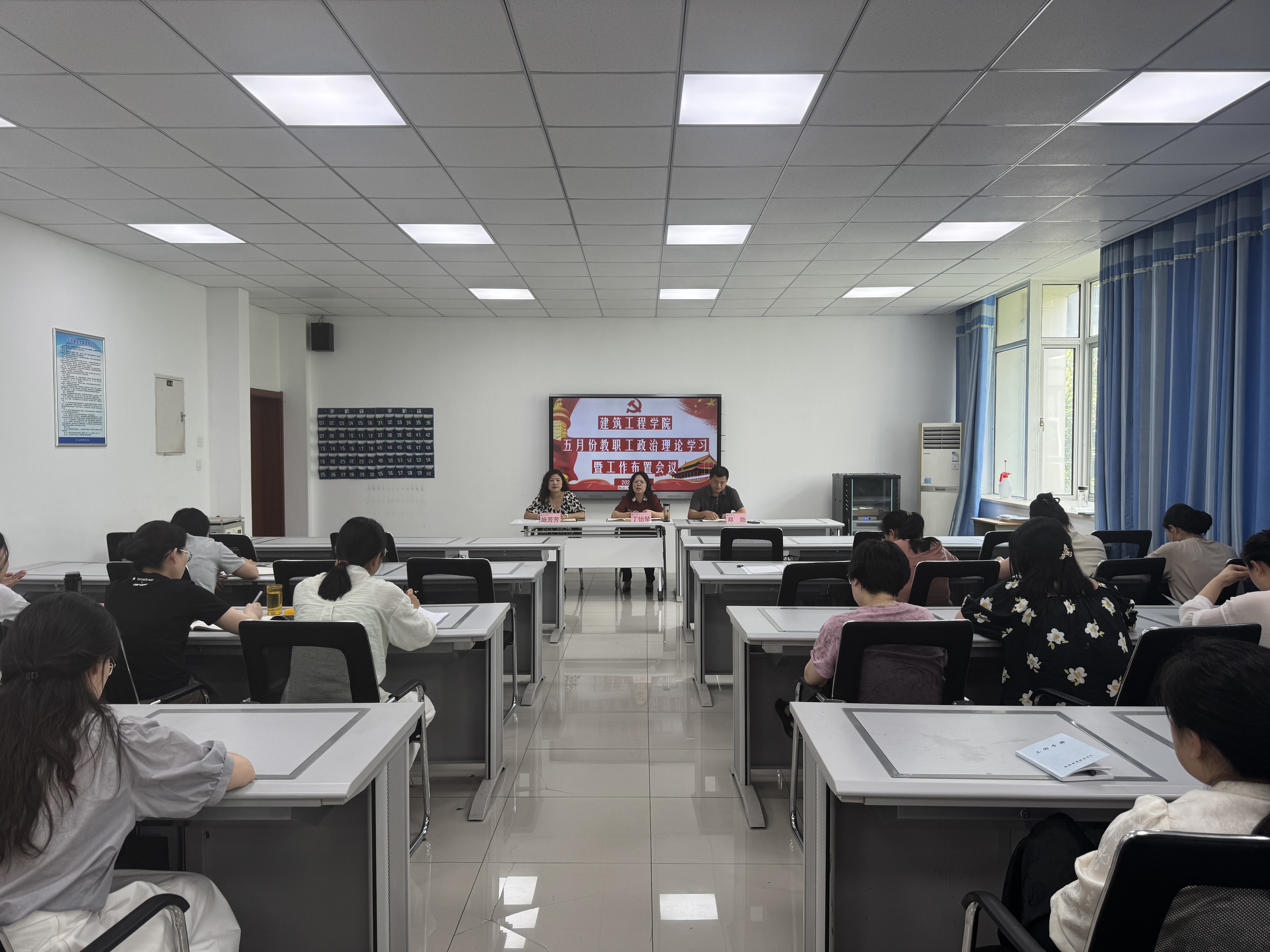 5月21日下午,建筑工程学院在建工楼304会议室召开五月份教职工政治理论学习暨工作布置会议,该院党政班子及全体教职工参加会议,会议由该院党总支副书记(主持工作)丁怡琴主持。