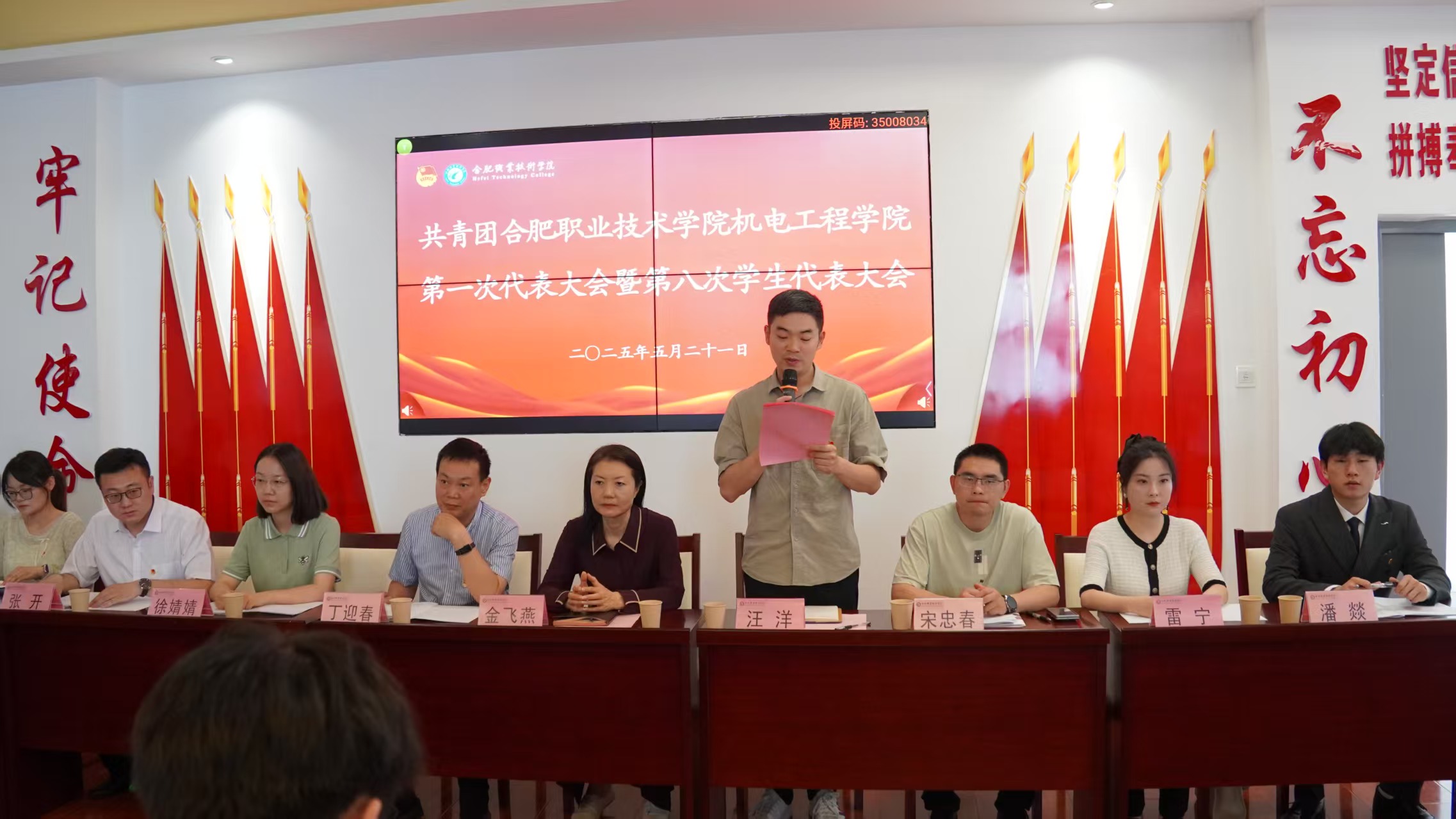 5月21日,共青团合肥888集团学院机电工程学院第一次代表大会暨第八次学生代表大会在汇心湖校区召开。校党委副书记金飞燕,校团委副书记汪洋出席开幕会并讲话,机电工程学院党总支副书记(主持工作)丁迎春,该院副书记宋忠春,该院团总支负责教师、专职辅导员教师、校学生会主席潘燚以及机电工程学院132名正式代表参加此次大会。
