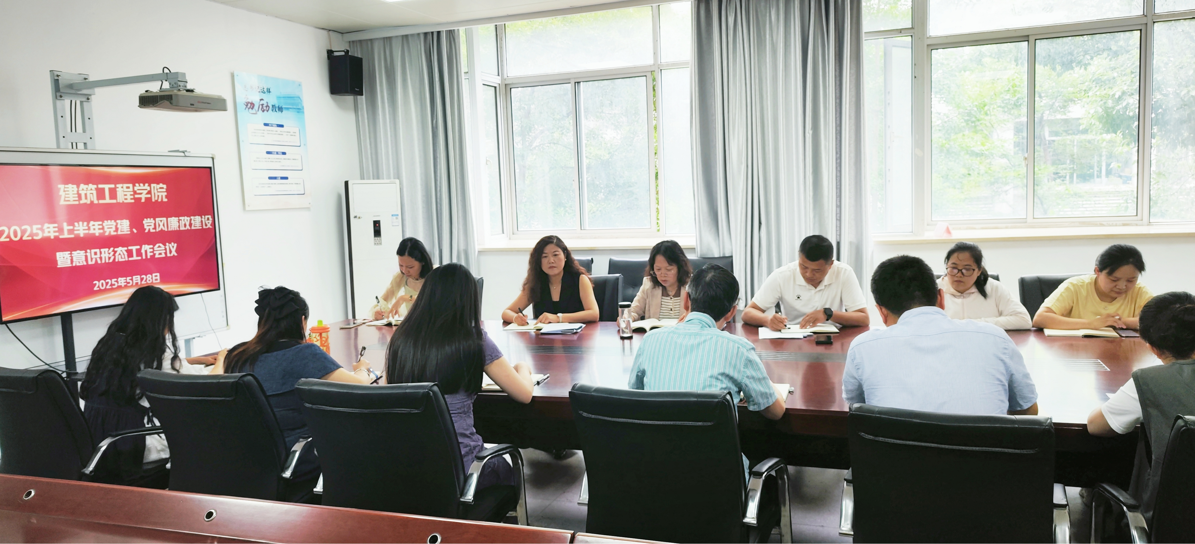为加强党的建设,深入贯彻落实全面从严治党要求,压紧压实党风廉政建设责任,落实“一岗双责”制度,强化意识形态责任意识,5月28日下午,建筑工程学院于建工楼213会议室召开该院2025年上半年党建、党风廉政建设暨意识形态工作会议,该院党政班子成员、各支部书记及委员参加了会议。会议由党总支副书记施芳芳主持。
