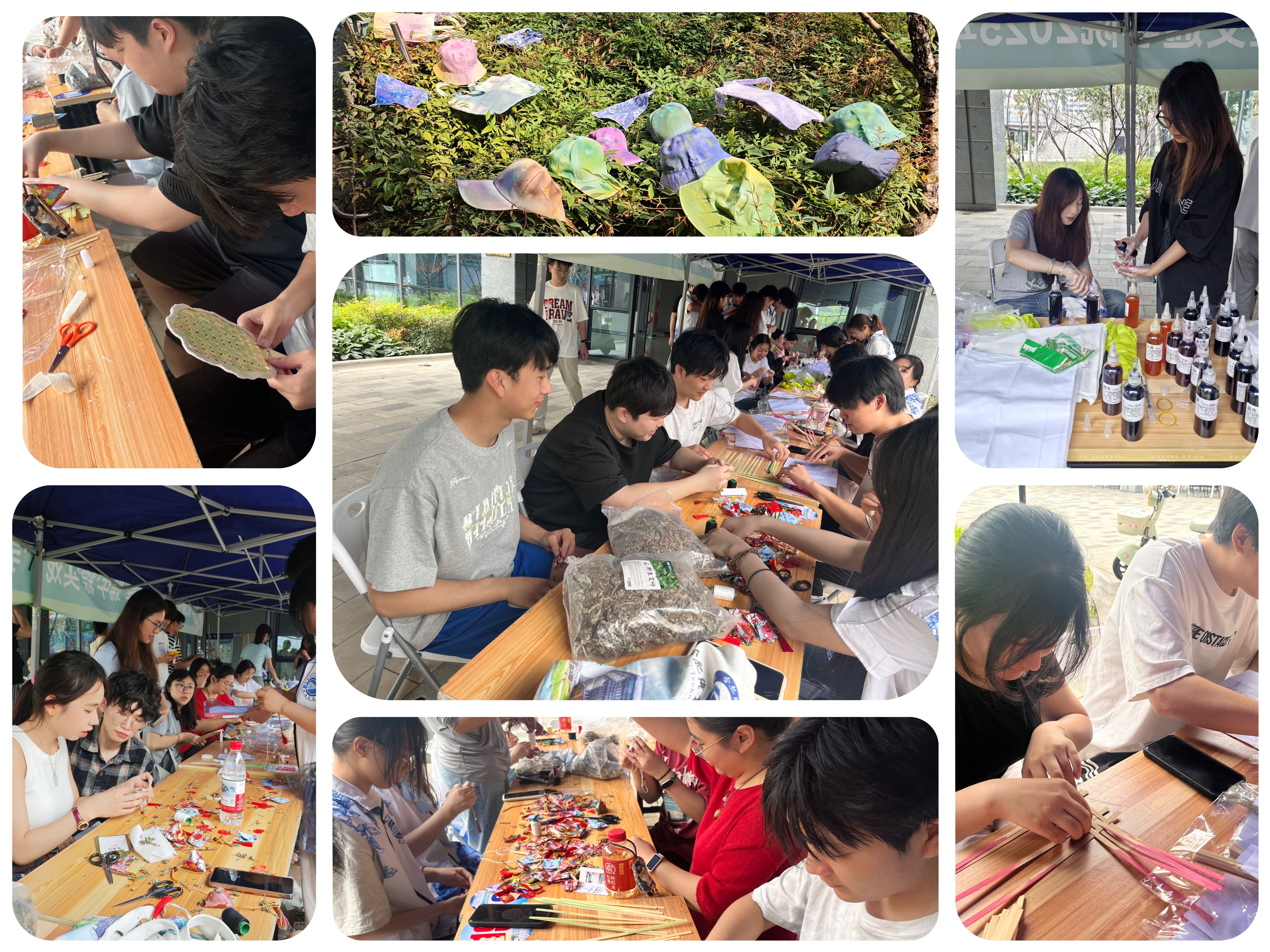 活动中,同学们互帮互助的场景温暖动人,有人主动为新手讲解编织技巧,有人协作完成大型扎染作品,欢声笑语与手工创作交织成和谐乐章。活动尾声,每位参与者都收获了满载心意的手工作品,更在创作中释放了压力,收获了心灵的愉悦与满足。