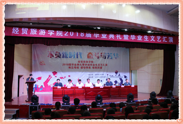 典礼结束后,与会师生共同观看了精彩的欢送毕业生文艺汇演。似水年华,难说再见,毕业不是结束,而是人生的另一个开始,祝愿2018届毕业生们在未来人生道路上,不负时代重托,书写属于自己的奋斗篇章!(供稿:经贸旅游学院 编辑:沈婉婉)