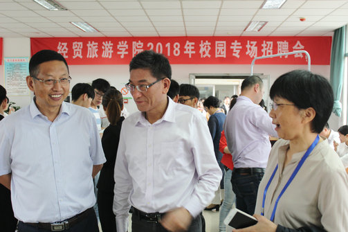 5月26日上午9点,经贸旅游学院2018年校园专场招聘会在图书馆二楼招聘大厅如期举行。此次招聘会得到了校领导及相关部门的大力支持,副校长孙兴林、学生处长高恒平等以及经贸旅游学院负责人到场指导,与用人单位和毕业生进行深入交流。