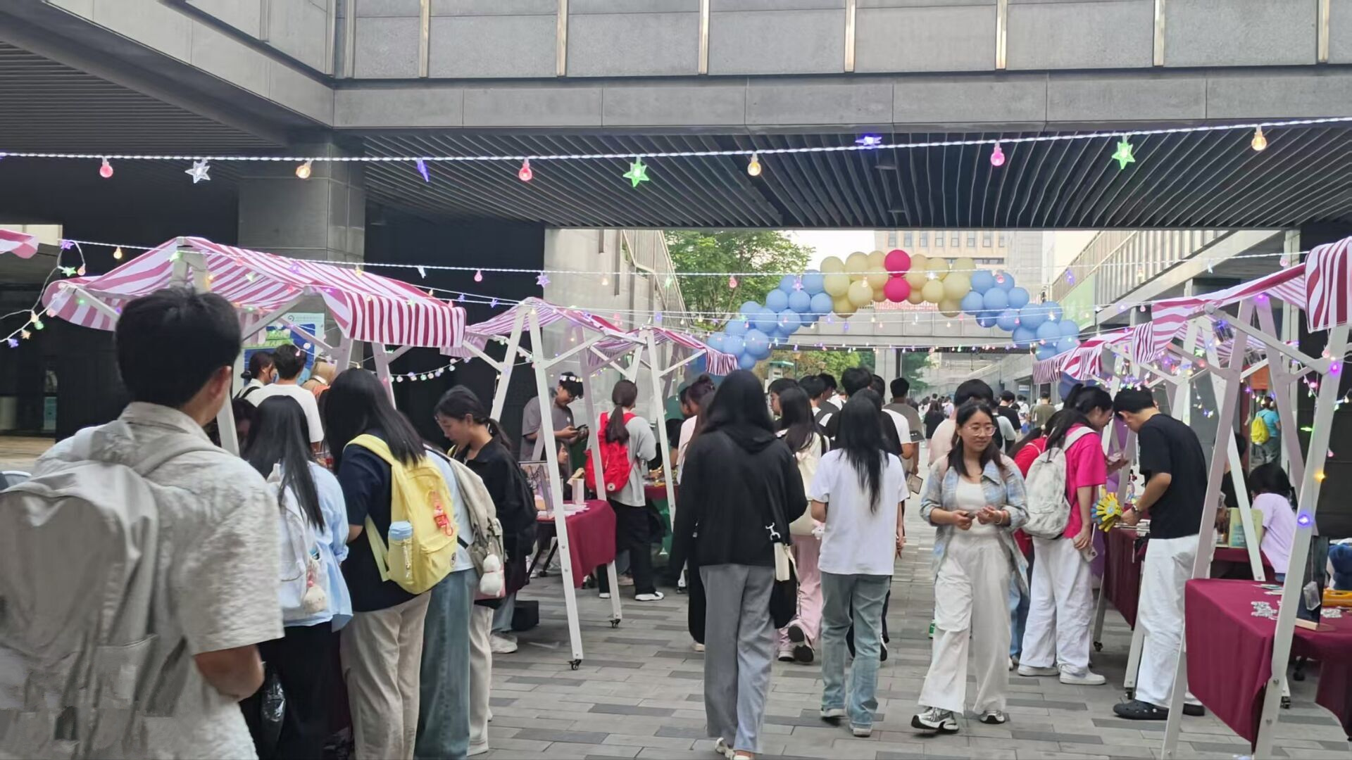 活动当日,现场人头攒动,一个个摊位整齐排列,琳琅满目的商品令人目不暇接。从学习资料、经典教材到文学书籍,从实用电子产品、特色文创到精美服饰鞋包及各类生活用品等,种类丰富,价格亲民,满足了同学们多样化的需求。参与者们精心布置自己的摊位,不仅制作了创意十足的宣传海报,还别出心裁地设置了趣味互动环节。同学们在各个摊位间穿梭,挑选心仪的物品。整个交易过程充满了欢乐与惊喜,整体氛围轻松愉悦。