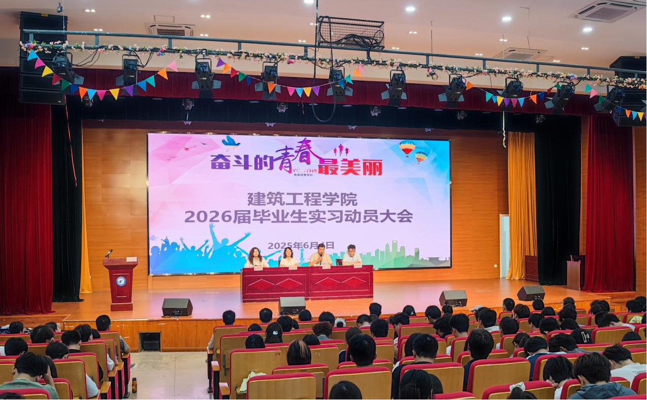 6月4日下午,建筑工程学院在鼓山校区大学生活动中心召开2026届毕业生实习动员大会,建筑工程学院党政班子成员,全体实习指导老师、实习班级辅导员及2026届全体实习学生参加了此次会议,会议由建筑工程学院副院长邓勋主持。