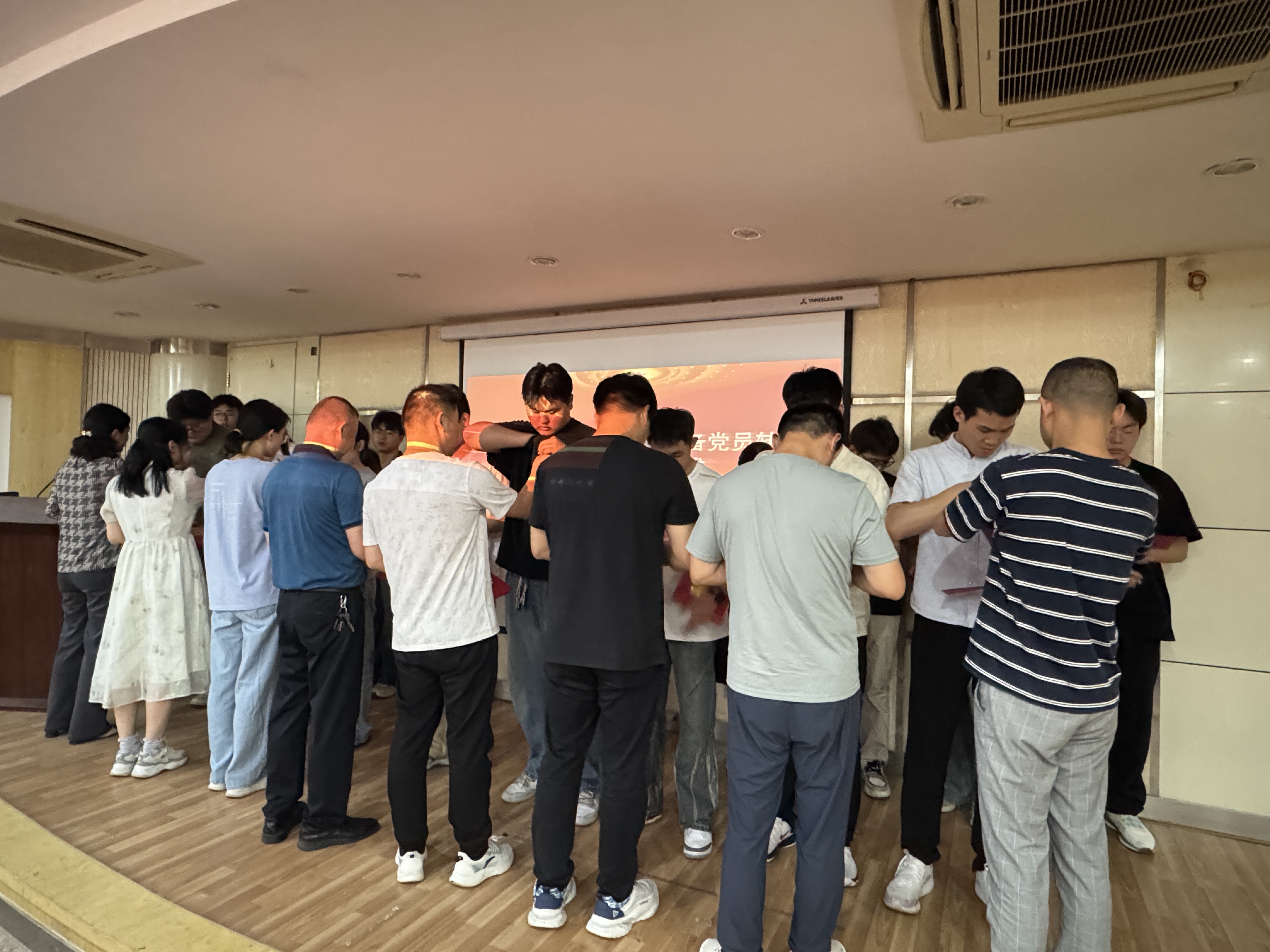 随后举行了庄严的入党宣誓仪式。在领誓人的带领下,全体学生党员面向鲜红党旗,高举右拳,用铿锵有力的誓言许下了对党的忠诚承诺。丁路路和孙傲分别代表预备党员和转正党员进行发言,他们承诺将以党员的标准更加严格地要求自己,发挥先锋模范作用,并向中国共产党致以最崇高的敬意。