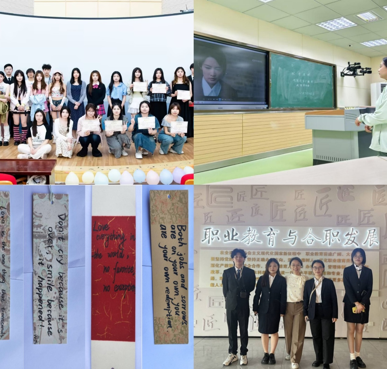 协会相继推出“声临其境,音绘万象”趣味配音活动,引导学生在声音艺术中感受语言魅力;举办“绽放英语魅力,点燃学习热情”英语才艺大赛,为学子提供展现语言才华与青春活力的舞台;开展“英墨书香,悦读拾萃”跨文化书法活动,巧妙融合英语学习与中华传统书法艺术,在翰墨飘香中促进跨文化理解;组织经贸旅游学院学生参观校史观,引导大学生们体悟爱国精神、劳动精神与工匠精神所蕴含的深邃意蕴。这一系列活动的成功开展,显著提升了协会的吸引力与凝聚力,营造了浓厚的校园英语学习与文化育人氛围,是支部党建与社团发展同频共振、互促共进的生动写照。