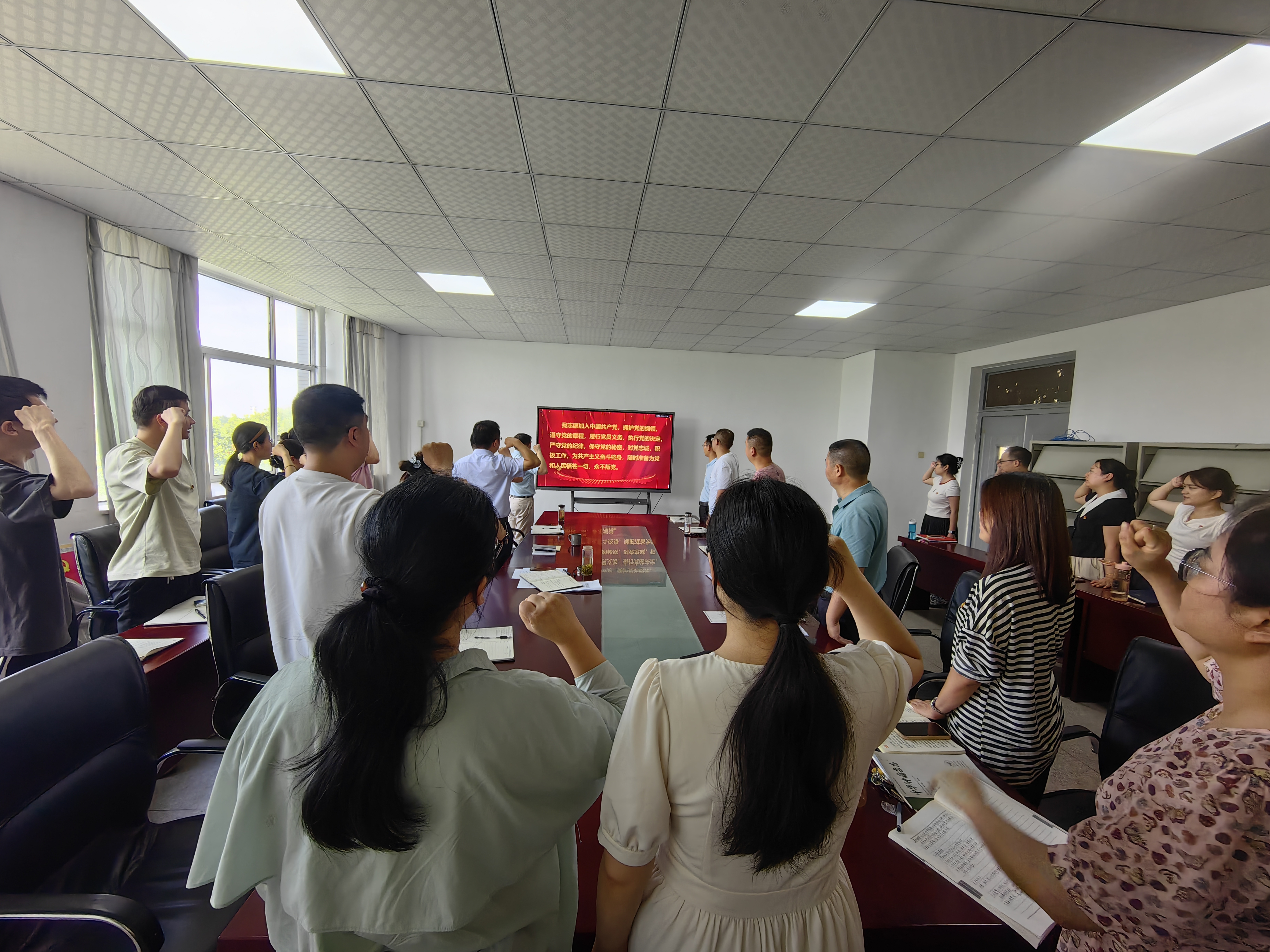 随后,大家观看了警示教育片,重温了入党誓词。