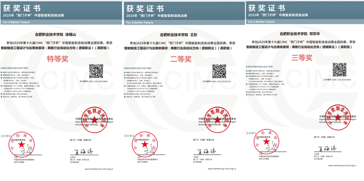 近日,2025年第十九届“西门子杯”中国智能制造挑战赛华东三赛区暨全国初赛比赛顺利举行。我校机电工程学院徐福山、陈化伟等6位同学获得离散行业自动化(逻辑算法)赛项全国初赛特等奖、二等奖、三等奖各一项。