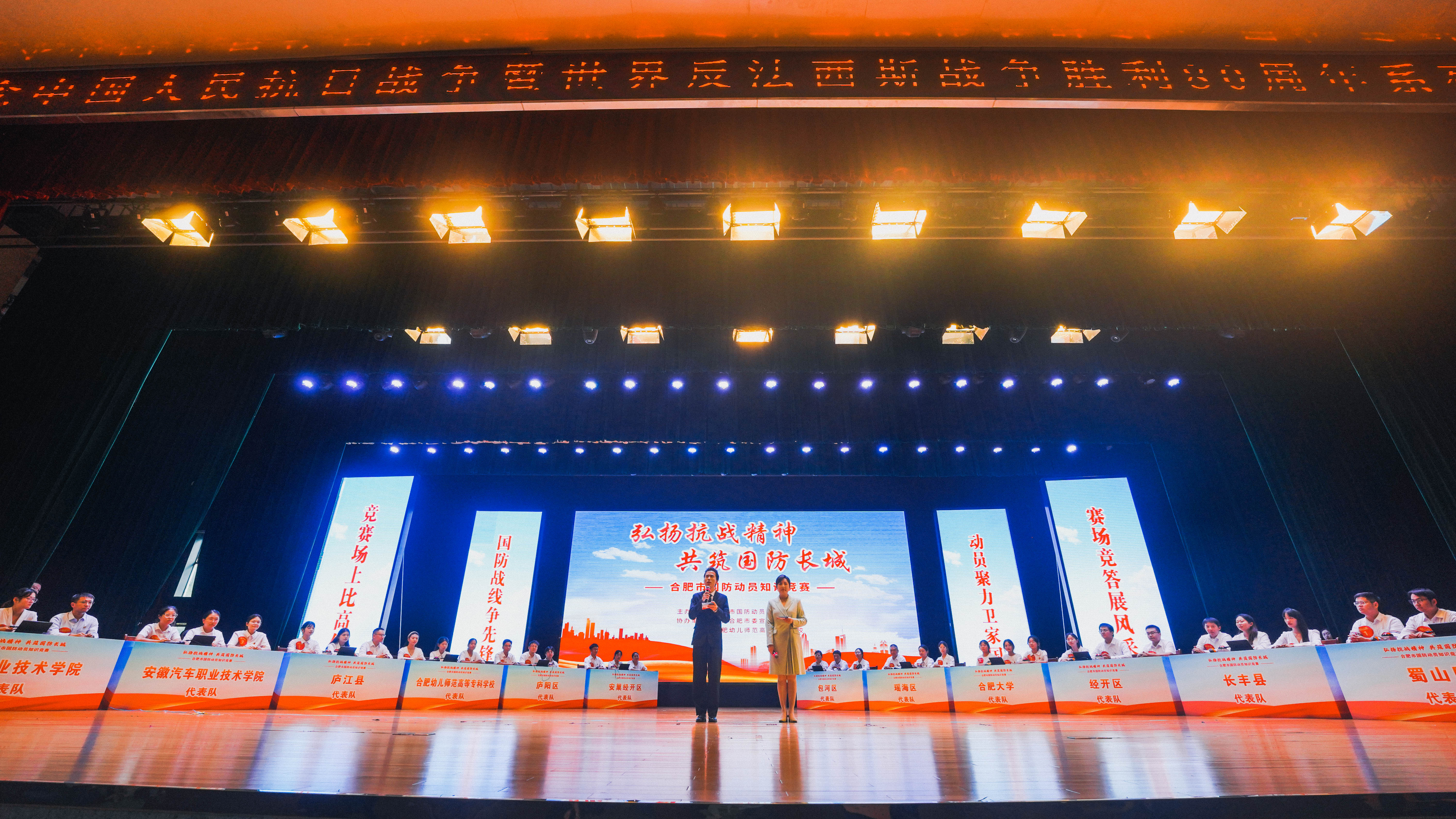 本次知识竞赛以“弘扬抗战精神,共筑国防长城”为主题,来自全市国防动员系统的8支代表队以及合肥大学、合肥幼儿师范高等专科学校、合肥888集团学院、安徽汽车888集团学院4所高校代表队参加决赛。现场设有必答题、抢答题、风险题等环节,比赛内容涵盖国防法规、人民防空、军事常识、抗战历史等多个领域。经过近两个小时的激烈比拼,最终评选出一、二、三等奖及优秀组织奖等多个集体和个人奖项。