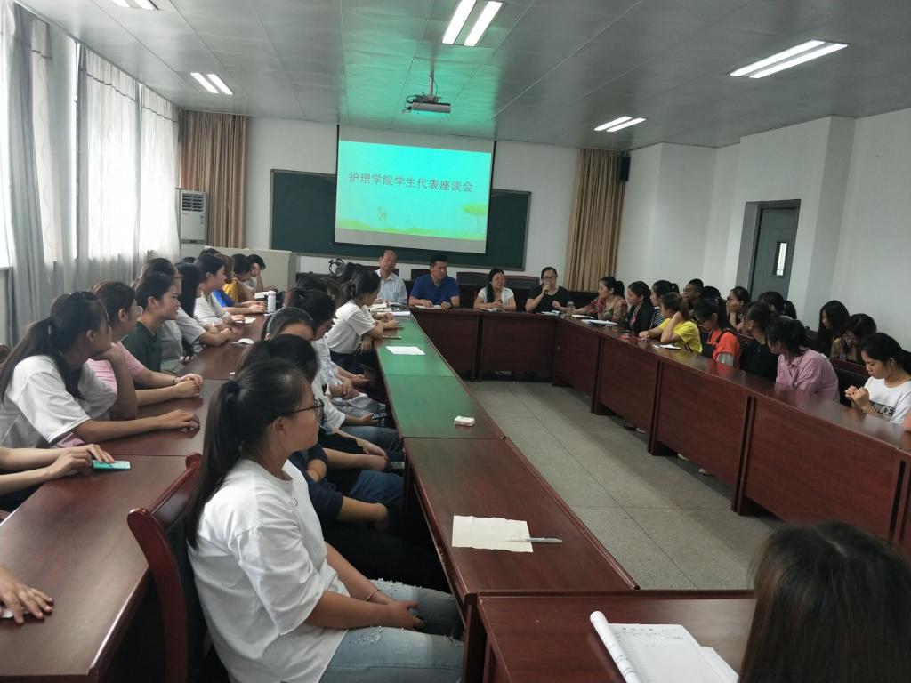 为了更好地建立老师与同学的沟通,紧抓学风建设,帮助学生提升就业认知,2018年7月2日下午,护理学院在医学北楼210会议室召开护理学院学生代表座谈会议,全体在校班级班长、学习委员、学生代表以及学生会学习部成员参加本次会议。护理学院副院长王玉蓉(主持行政工作)、党总支副书记邹华兵、院长助理梁春艳,各教研室、教学管理办公室、学生工作管理办公室负责人参加本次座谈会。会议由梁春艳主持。