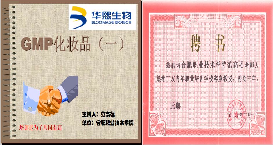 范高福老师借助合作平台,积极为企业开展培训服务,为学生提供职业资格技能鉴定,如药物分析工等,每年约100人次。2020年,疫情期间为合作企业华熙生物科技有限公司巢湖分公司开展岗前培训网络继续教育。2018-2019年,承担合肥市中心血站巢湖分站单位员工开展《急救药品种类及用药注意事项》、《抗凝血药和促凝血药》等专业知识提升教育约100人次。