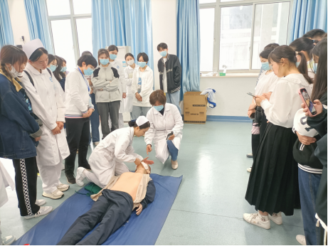提升服务能力,养成急救意识,医学院开放外科实训中心。5月4日下午,护理教研室召开职教周开放准备会议并安排具体工作。李双玲主任组织学生志愿者对护理南楼4楼外科实验实训中心进行全面消毒,安排同学接待、分发口罩、鞋套等防护用品,安排2名2022年省赛选手和相关老师进行讲解。5月9日至12日职教周开放日,共接待各类医学专业及其他非医学类专业学生400多人参观“外科实验实训中心”,对2020级护理专业即将进入临床实习的学生进行了专业宣誓。通过参观学习,同学们见识了外科手术室的严谨设置,急救技术的基本流程,理解了什么是“救死扶伤”的职业精神,什么是“健康所系,性命相托”。
