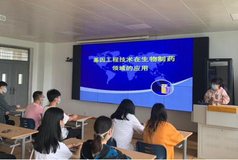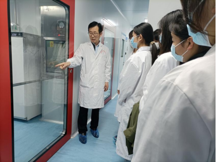 校企合作,医教协同,开放生物医药协同创新中心。5月11日,杜江老师带领同学们参观了生物医药协同创新中心,给同学们介绍了中心的建设情况、主要功能、原核和真核发酵系统研发生产生物蛋白等实操工艺、中心正在进行的合作研发和生产情况、平台即将开展的下一步校企合作工作,如与中科院武汉病毒研究所及相关企业开展的“溶菌酶”优化生产等合作项目。5月12日,苏琰老师在生物医药协同创新中心多功能报告厅,给同学们做了“基因工程技术在生物医药领域的应用”专题报告,介绍了基因工程技术生产开发各类生物蛋白在医学、动保和医美等领域的应用。