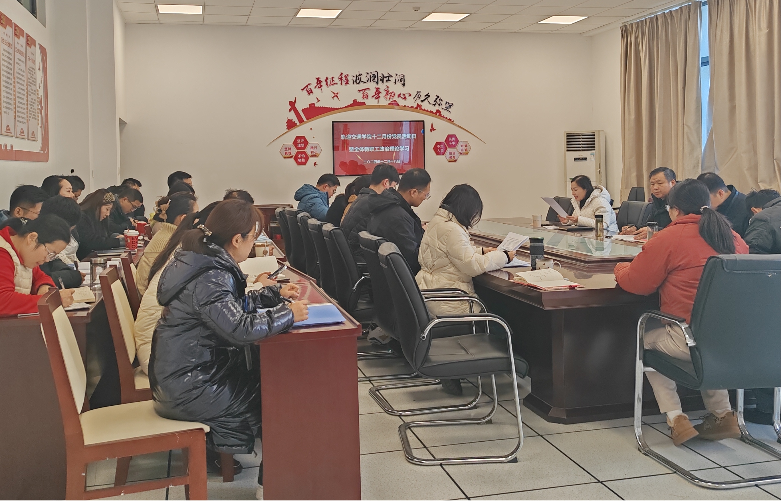 为深入学习贯彻习近平新时代中国特色社会主义思想,扎实推进学校教职工政治理论学习,12月18日,轨道交通学院党总支在轨道楼207会议室开展了12月份党员活动日暨全体教职工政治理论学习活动,该院全体教职工参加了此次活动。