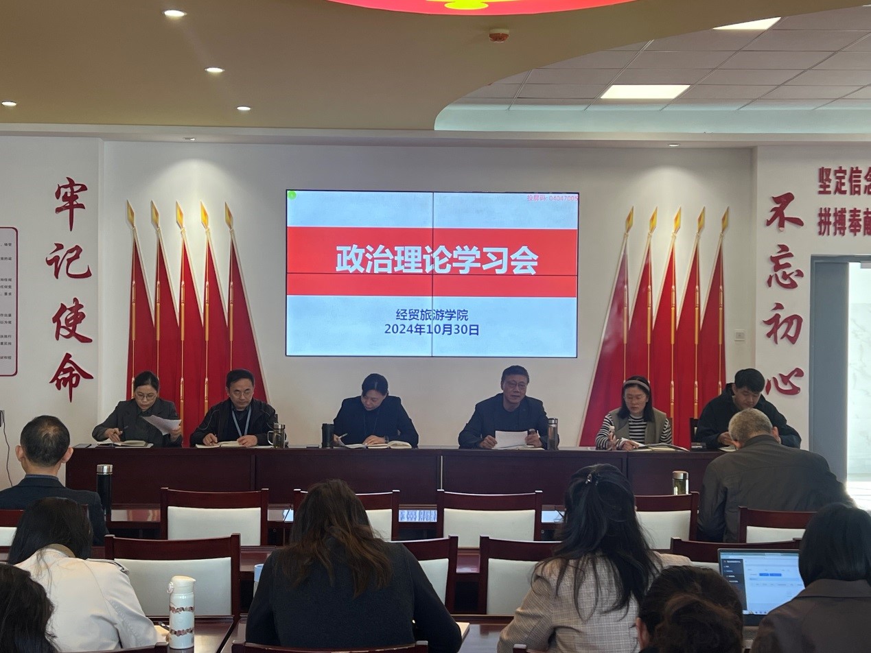 10月30日下午,经贸旅游学院在党性体验馆召开政治理论学习会暨全体教职工大会。学院党政、全体教职工参加会议,会议由副院长陈继林主持。